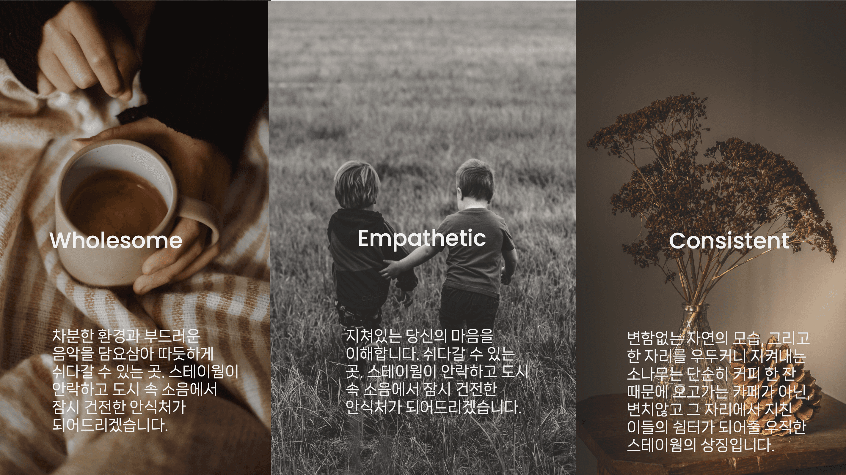 의류쇼핑몰 시절 익힌 포토샵·일러스트 경험을 활용해 로고, 톤, 무드, 컨셉을 모두 직접 디자인했습니다.